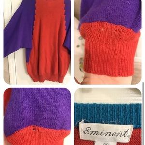 Vintage 80s Wool Angora blend Paisley Colorblock Sweater Sz S colorful funky