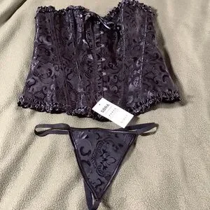 NWT elegant bustier w/ matching thong. Approx. 14 in. Expands approx. 4 inches