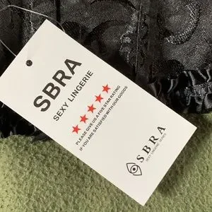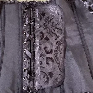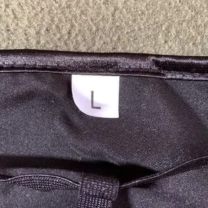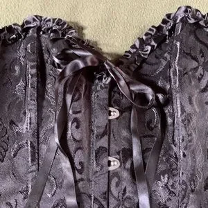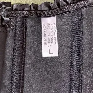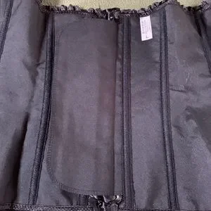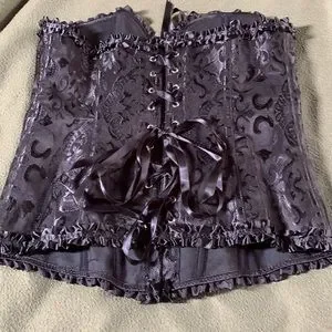 Never worn. Black jacquard pattern. Long black ribbons for expansion. Labeled large. No flaws, stains or smells.