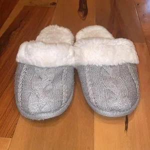 LIKE NEW- VICTORIAS SECRET CLOSED TOE FAUX FUR SWEATER SLIPPERS - SIZE MEDIUM