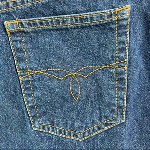Dark rinse, wash with factory fading on front