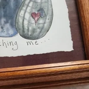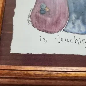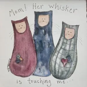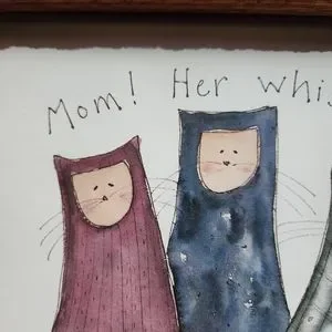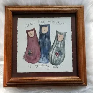 Annette Fish wooden framed print 3 cats "Mom! her whisker is touching me"