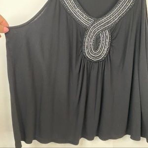 APT. 9 Black Beaded Low Cut V Neck Tank Top Plus Size 2X