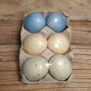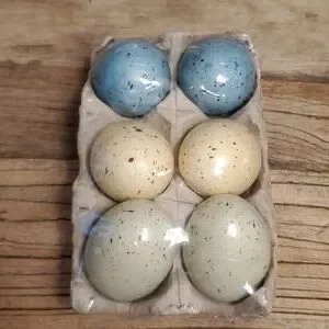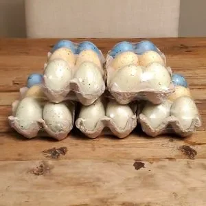 New, never opened (5) packs of 6 Easter craft decor eggs. Originally purchased to make a wreath or decorate an Easter holiday tree. Could also make great vase filler. Each pack has two blue speckled eggs, two yellow speckled eggs, and two green speckled eggs.