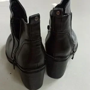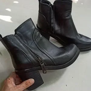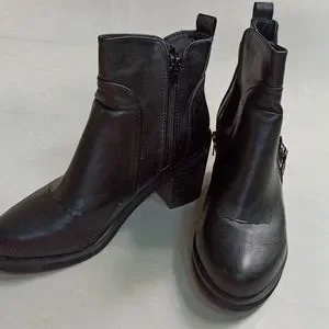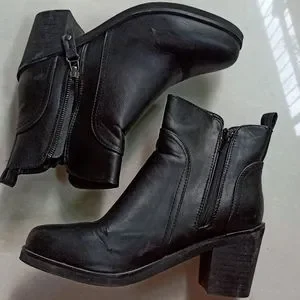 Size 40, colour black, block heels, zipper closure on both side of feet enables ease in wearing.