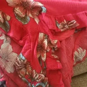 Cute little romper with flowy shorts, adjustable key hole bust enclosure and flowy sleeves. The front is lined on top so you may go with or without a bra.