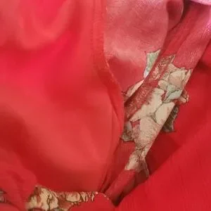 Colors are: Coral back ground with rust peachy and cream hibiscus with green and blue flowers.