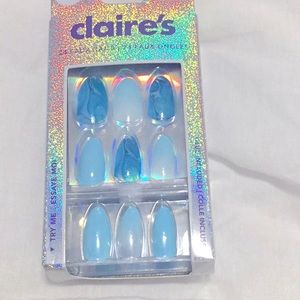 NWT Claires glue on nails Blue and white and light blue sparkles glue included