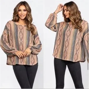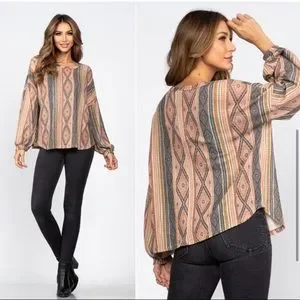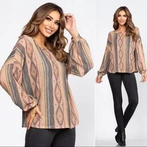 LAST ONE: USA Made Aztec printed long sleeved women’s comfy fall blouse top