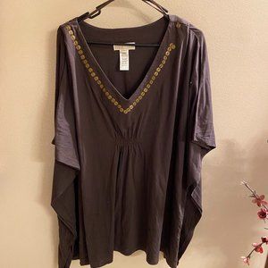Brown Michael Kors dolman or batwing sleeves top. The neckline has sequins on a V--neckline.