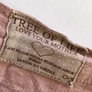 Lovely TREE OF LIFE womens mini wrap skirt in dusty pink hemp slubbed fabric and made in Nepal.