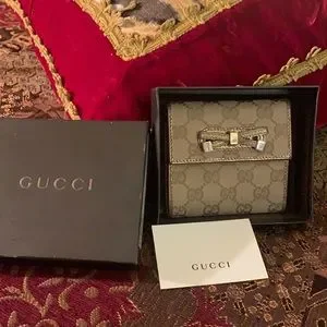 Authentic Gucci GG trifold bow wallet