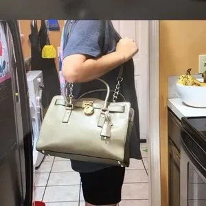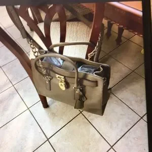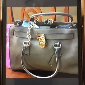 Looks new, in perfect shape, dolphin grey with long strap, shiny hardware, lots of compartments