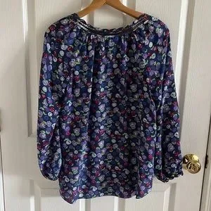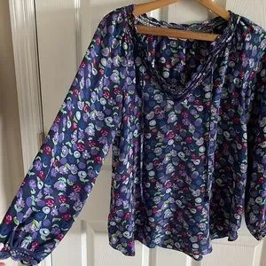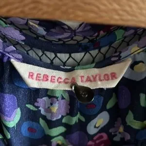 Rebecca Taylor 100% Silk Purple Floral Longsleeve V-Neck Size 6