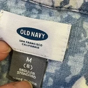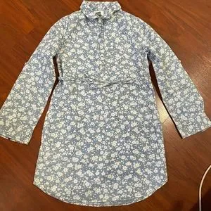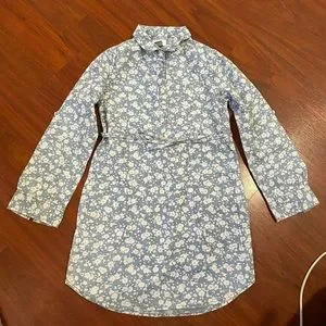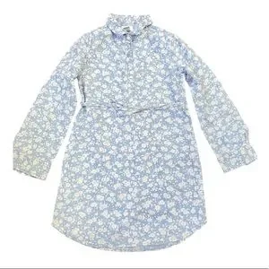 Girl Old Navy floral shirt dress button down tie waist long sleeve cotton size M
