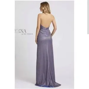 NWT Ieena Mac Duggal Dress Long Metallic Glittered Slit Evening Purple