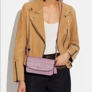 Coach Ice Purple Crocodile Embossed Leather Convertible Hayden Crossbody Bag NWT