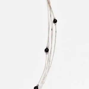 Features artisan hallmark; mini silver and onyx station spacer beads and a ring clasp closure.