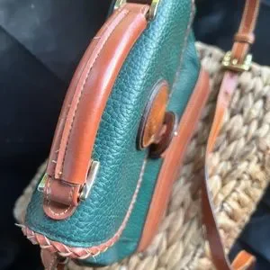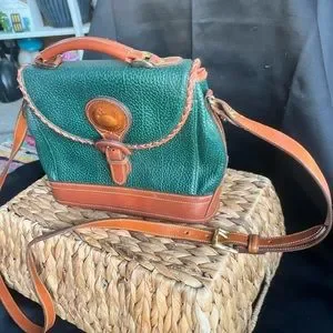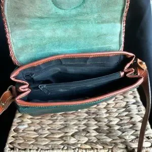 Vintage All Weather Leather green and brown crossbody bag in good used condition.😊