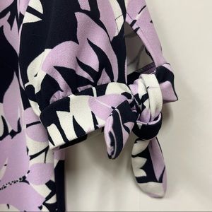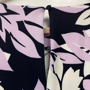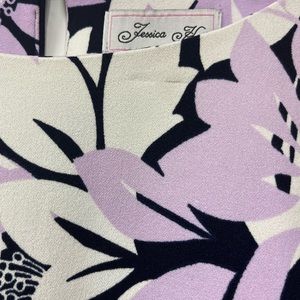 Jessica Howard dress decorated in large white and purple pastel flowers on a navy background