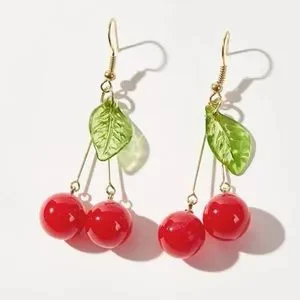 💕 3 for $30: Red Cherry Red Bead Dangle Earrings