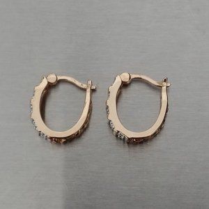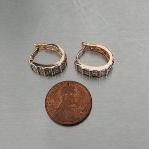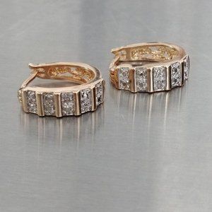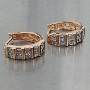 925 R CHINA SILVER - GOLD TONE HUGGIE EARRINGS WHITE CZ