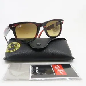 Ray-Ban RB 2140 1362/85 50mm WAYFARER Red/Brown Gradient New Unisex Sunglasses. 100% Authentic. Frame color is red shine gloss acetate, full rim, Wayfarer model. Temple color is also red gloss acetate with silver Ray-Ban logo at each side. Lens is brown, gradient and made of glass, 3N. Width/Bridge/Temple size is 50mm 22mm 150mm. Frame is shipped with the Ray-Ban case, microfiber cleaning cloth and tag. Hand made in Italy by Luxottica Group. Retail $198.00. Box RB-22 X.