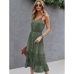 Green Midi Dress Fit and Flared Button Front Lace Detail Cami Top