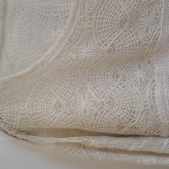 Free People Boucle Knit Ivory Ruffle Bottom Lace Insert Top