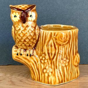 VTG Owl Toothpick Holder 70s Japan Tree Stump Ceramic Flowers Retro Boho Kitchen