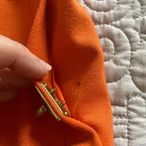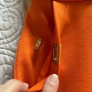 Pocket on left has back clasp missing and is pinned closed as shown in last picture