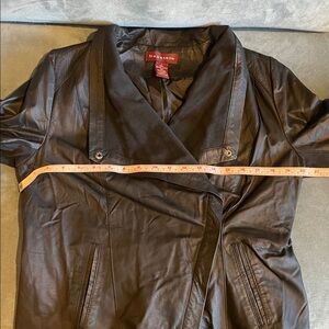 @birdisue I just added pictures showing the armpit to armpit measurement. Looks about 19 to 20 inches. Also, I noticed on the back of the coat, the seams have come apart on the back part of the armpit which is fabric and not leather. Also included pictures of that. If you are still interested, make an offer.