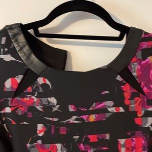 Taylor dress size 8, worn once! In EUC with fun graphic rose print and faux leather trim detail on neckline. Made with stretch and Seams make it very flattering.
