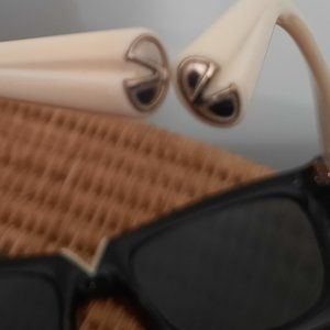 Black and off white with silver tone hardware.