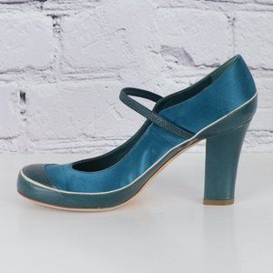 Materials: Satin Upper; Leather trim, insole, and outsole