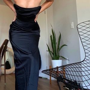 House of CB ‘Adrienne’ Black Satin Strapless Dress