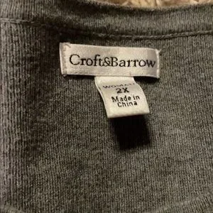 Excellent preowned condition. No piling under the arms. Gray sweater cardigan. Size 2X.