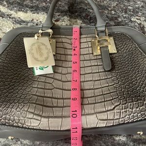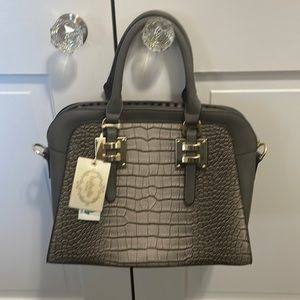 NWT vegan & lead free handbag. Gorgeous grey embossed print.