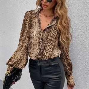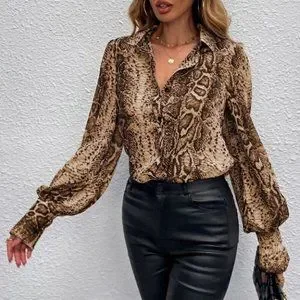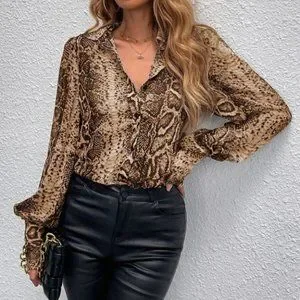 Snake Print Bishop Sleeve Blouse