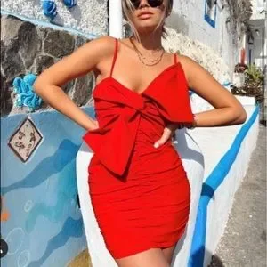 Zara bow ruched red dress,Valentine’s Day