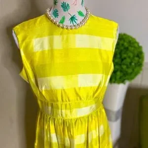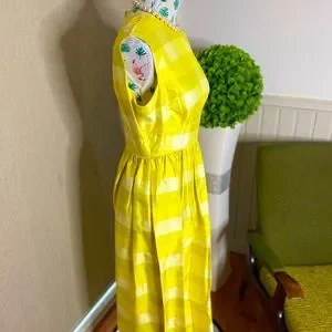 Beautiful vintage raw silk dress in sunshine yellow. Button detail in back. No tag but would best fit a size 8 to 10. Just in time for spring racing carnival.