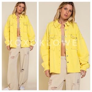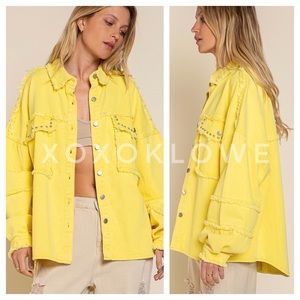 POL Sunshine Yellow Studded Denim Twill Shacket