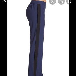 THEORY • blue and black stripe snap dress pull on pant nwt