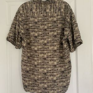 100% Rayon mens Campia button down shirt. Used but in good condition . Size medium! Very light breathable material. Please let me know if you have any additional questions !