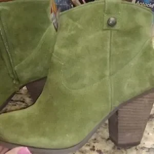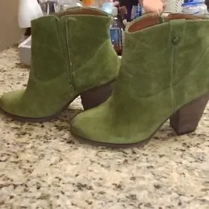 Booties by Vince Camuto army green color minimal use no damage to outside of shoe, slight peeling inside of both boots see photos. 💖 cute I just cannot use anymore.