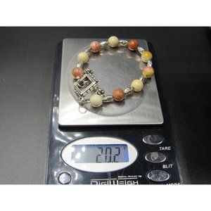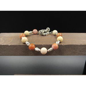 7" Silver Tone Cream Color Orb Stone Bracelet Vintage Elegant Beautiful Everyday