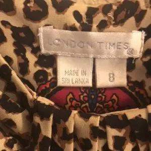 Ladies lovely sleeveless dress by London times. Size 8. Beautiful detailing in front and back. Dress is in like new condition. Very comfortable chair. You will get lots of Compliments when you wear this dress