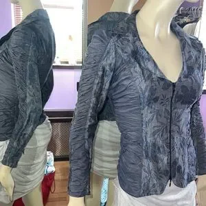 Anne Fontaine jacquard fitted rushed zipper suit jacket FR36 US 4-6