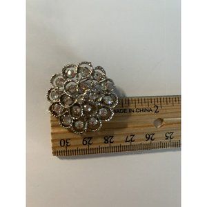 VINTAGE CLEAR RHINESTONE flower BROOCH/ PIN silver tone Pin Bent.
