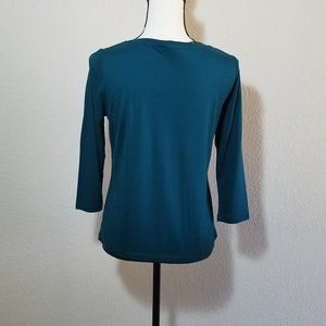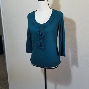 Talbots Petites Green Shirt 3/4 Sleeve Ruffle Top Solid Women's Holiday S P